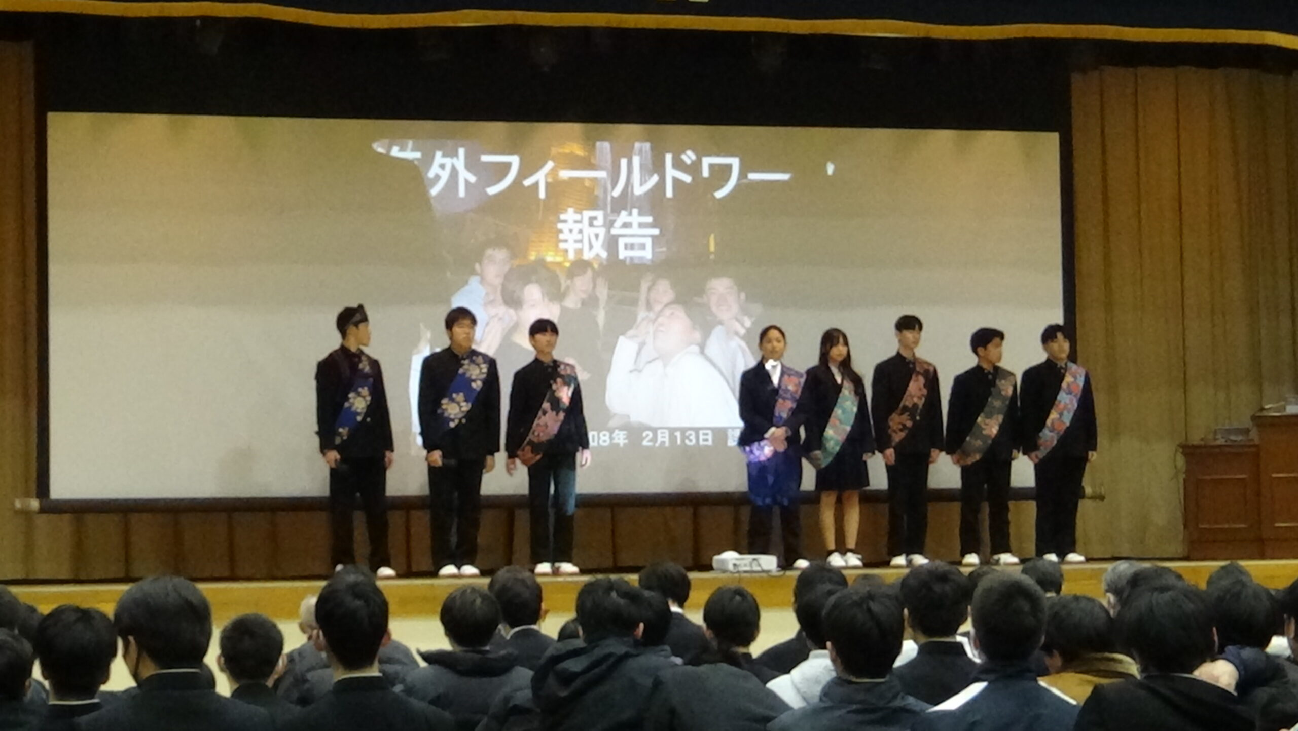 2月13日(金)に行われた課題研究発表会において、海外フィールドワーク研修の最終報告を行いました。